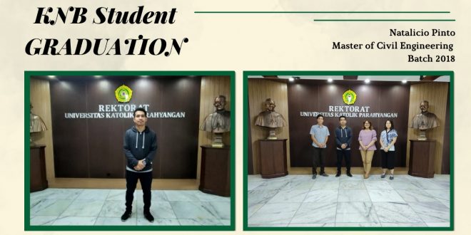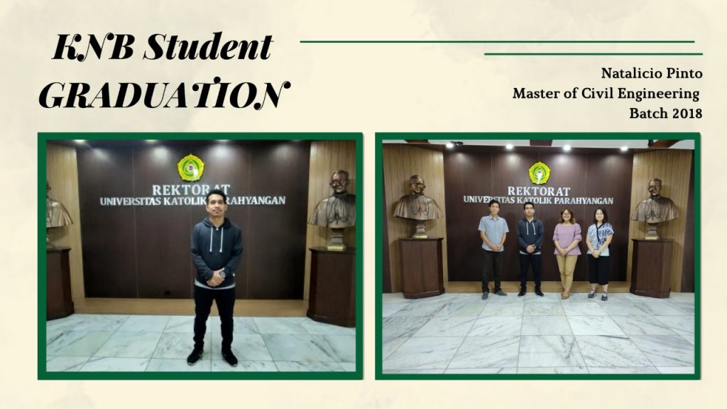 KNB Student Graduation! Congratulations to Natalicio Pinto for your graduation. Natalicio Pinto is one of the KNB Students Batch 2018 majoring in Master of Civil Engineering. We wish you luck in your future endeavors and hope the best for you. 2022-05-24 iounpar